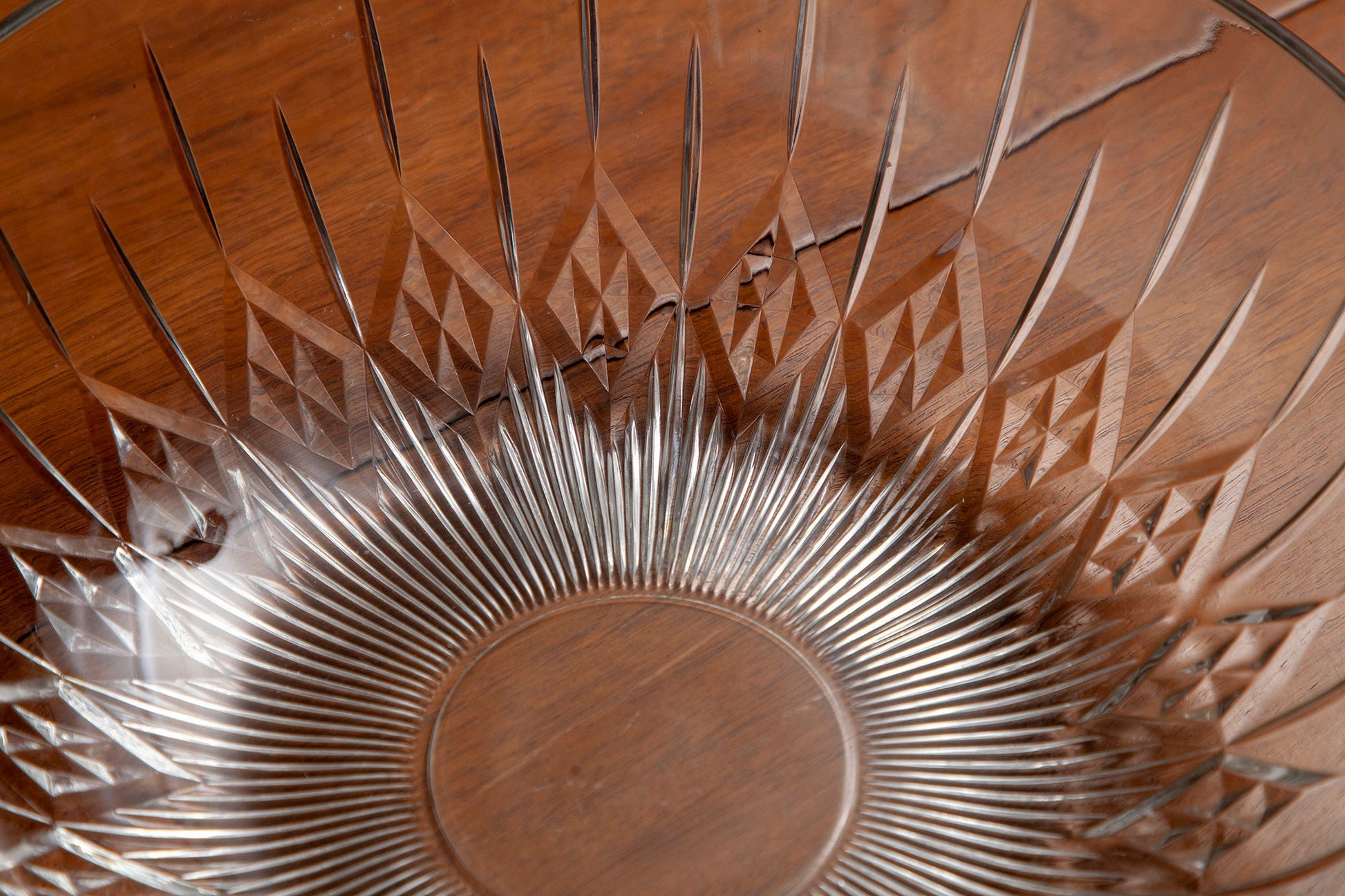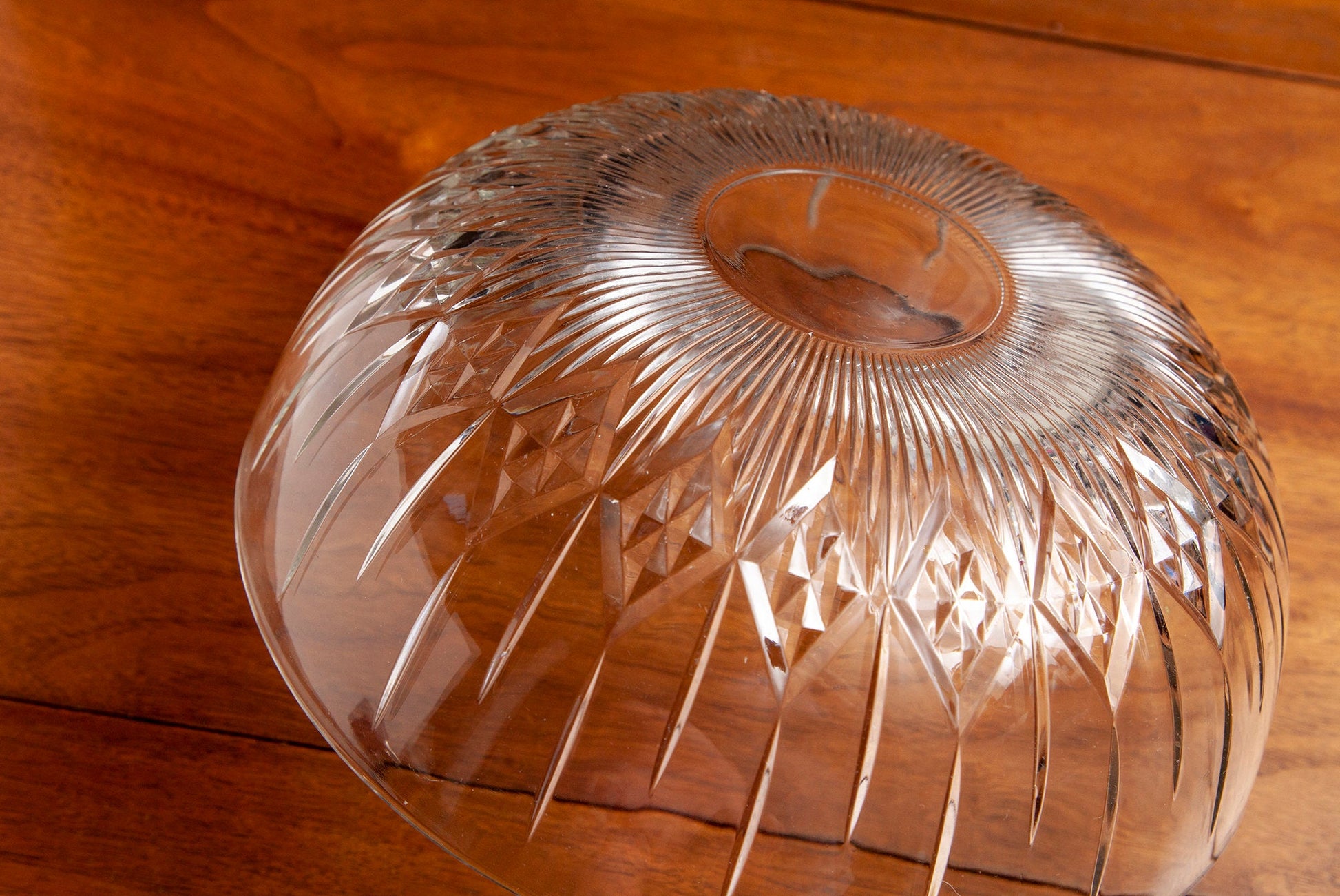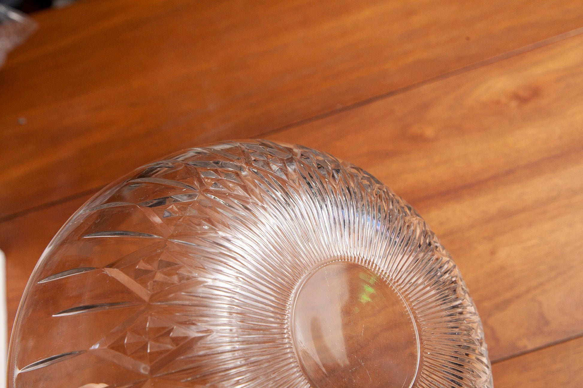 Vintage Anchor Hocking Canfield Glass Serving Bowl. Beautiful and timeless pressed clear diamond pattern with a cut base.