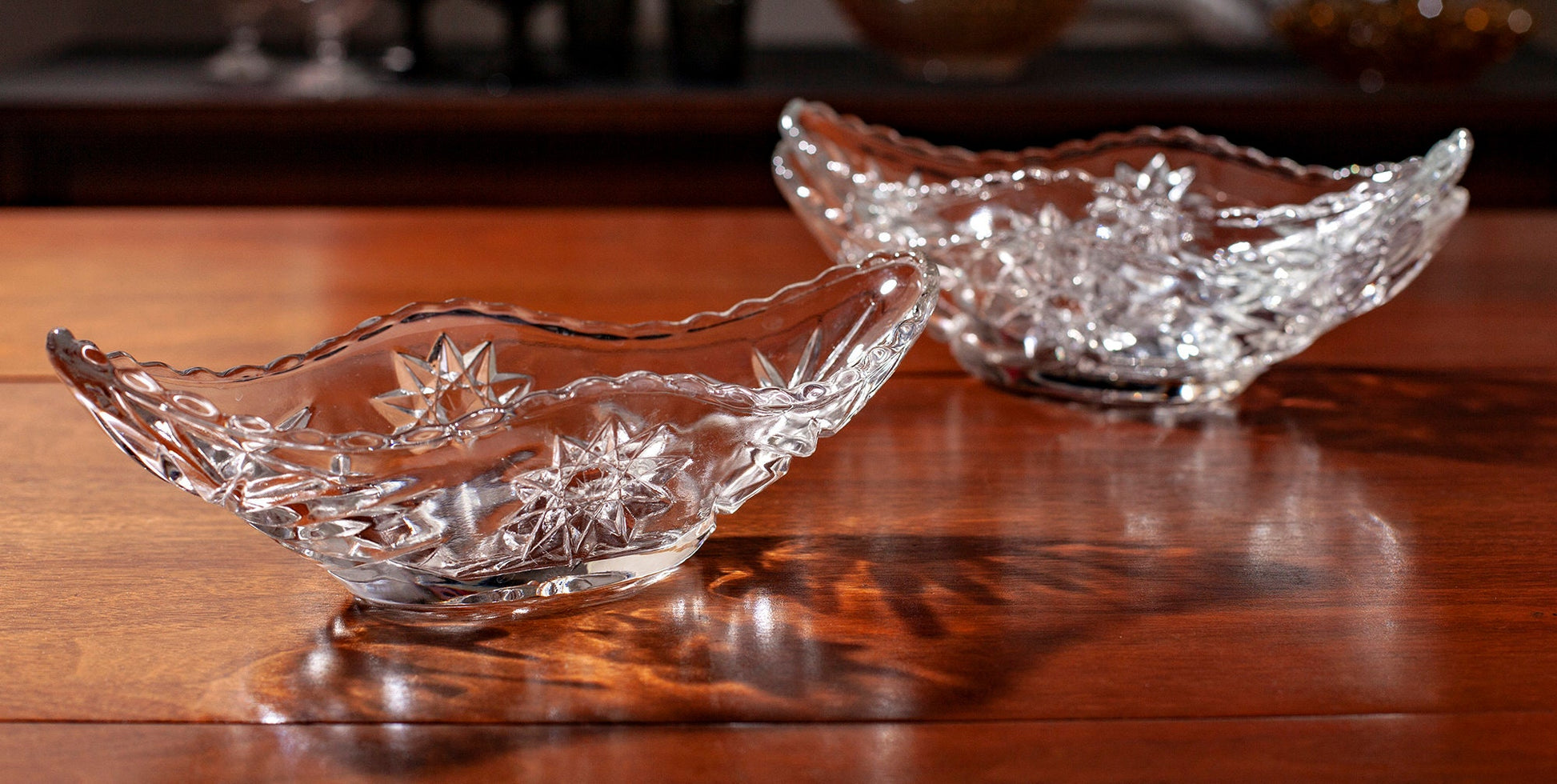 Vintage Anchor Hocking Prescut Clear Small Boat. Sold separately, and price is for each small boat. Classic clear pressed glass featuring a star and fan pattern, with scalloped glass along the rim. It's perfect as a serving dish, a welcome addition to the table or for sauces or dips, and maybe even for candy! The beauty is that you get to choose how to make this vintage item your own.