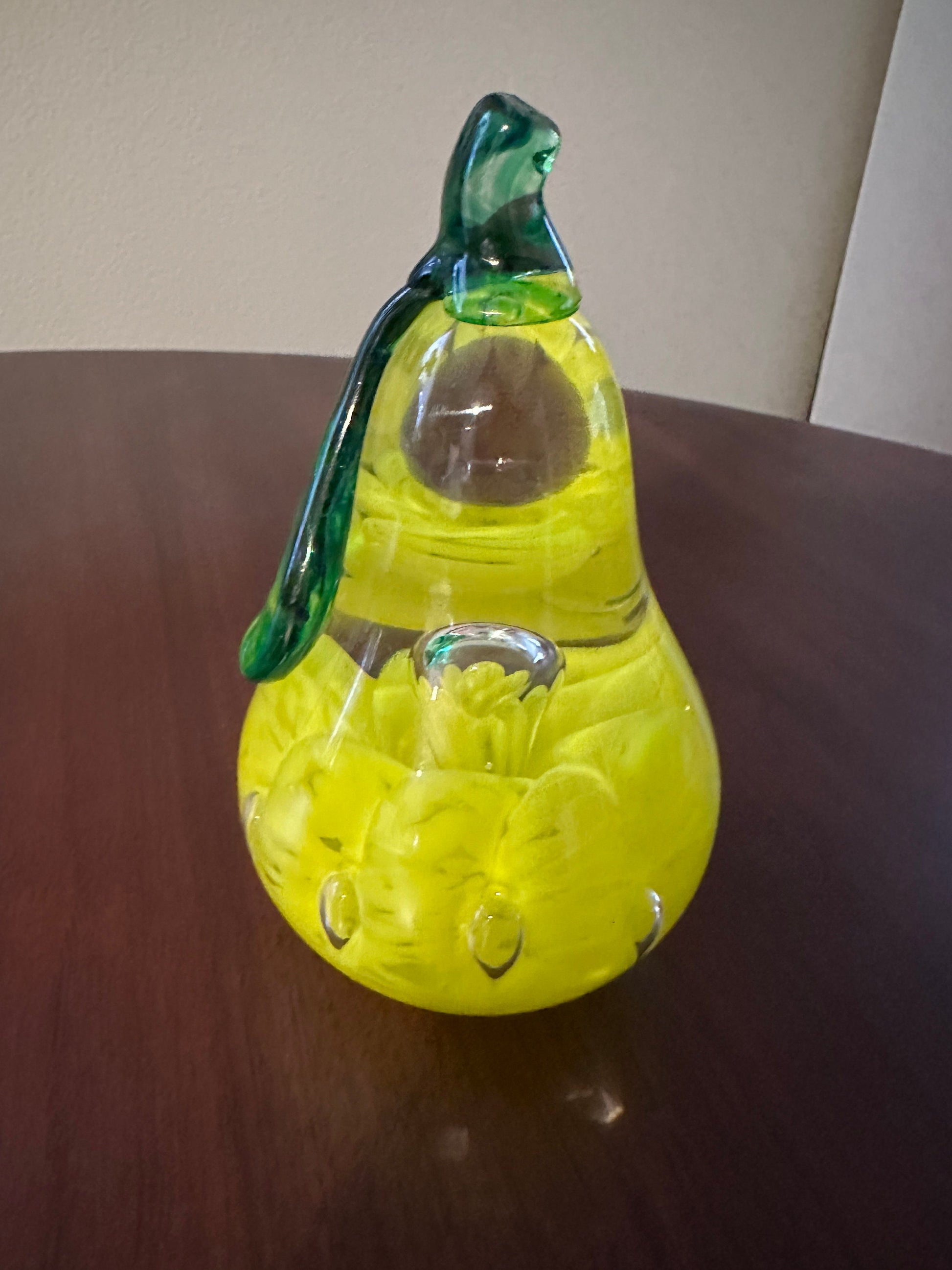 Vintage Art Glass Joe Rice Stamped Pear Paperweight