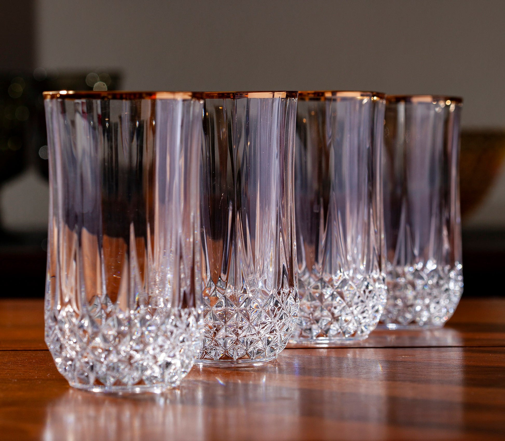 Vintage Cristal D'Arques-Durand Longchamp Gold Crystal Flat Tumblers (Set of 4)