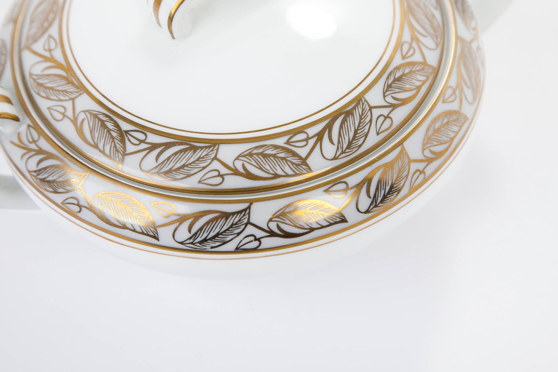 Vintage Noritake Greta China Sugar Bowl and Creamer. Each has a banded trim containing a beautiful pattern of gold leaves on a gray background. It is mid-century modern fabulousness! It is in excellent vintage condition, appears to have been hardly used, and has no chips, cracks, or crazing. Noritake produced the Greta pattern from 1951 to 1961, and it is hard to find.